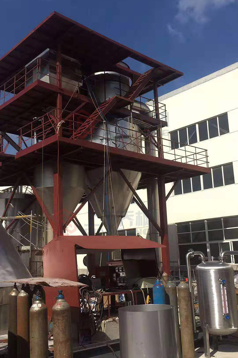 The pressure sensor reacts the pressure inside the tower and reflects the comprehensive parameters of the atomization system. The vibrating hammer can knock down the materials on the wall of the cone barrel by means of pulse. The outlet temperature sensor reflects the temperature of hot air of the dried material and carrier medium.