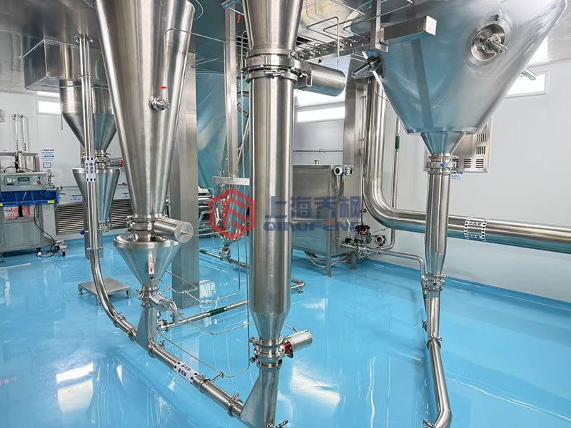 The low-temperature hot air and atomized droplets are fully contacted in the drying chamber, the solvent evaporates quickly, and the material is always in a low-temperature environment.