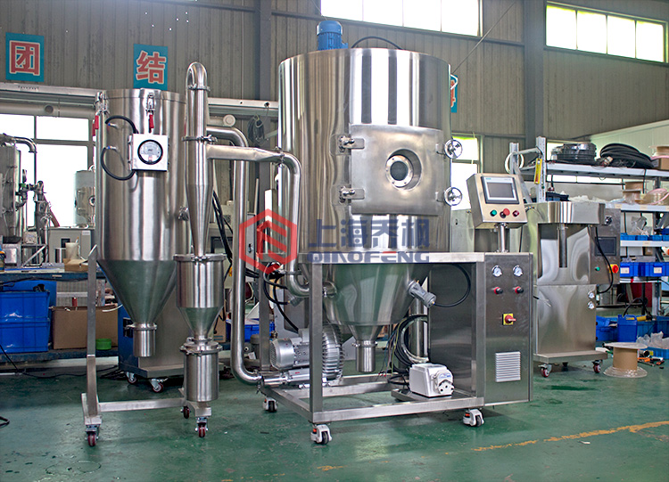 采用氣流霧化噴嘴和離心霧化器兩種進行結合,為離心氣流雙用噴霧干燥機,大屏幕彩色觸摸屏操作,全自動控制和手動控制相結合,中英文面板,參數(shù)液晶顯示。實時PID恒溫控制技術,精確控溫,加熱控溫精度1℃。干燥速度快,一般只有1-1.5秒,具有瞬間干燥特性。物料的干燥過程可在短時間內(nèi)完成,適用于熱敏性物料的干燥,并能保持物料原有的特性。生產(chǎn)過程簡化,智能觸摸屏程序控制方便,適合實驗和連續(xù)控制生產(chǎn)請聯(lián)系我們的工作人員定制生產(chǎn)噴霧干燥機。產(chǎn)品分散性、流動性、溶解性非常好。